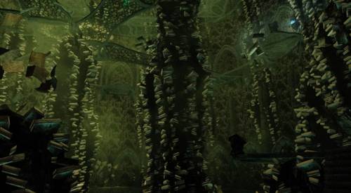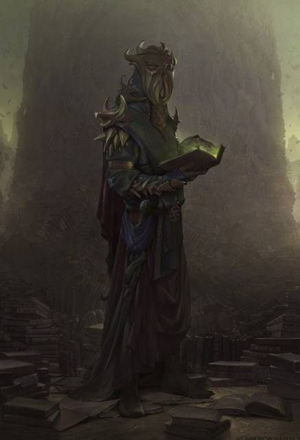 Мир изогнутых истин, затерянных среди тёмных вод бесконечного знания. Воздух здесь густ, словно мёд, пропитан шёпотом чуждых голосов, что нашёптывают древние тайны, которые смертный разум не в силах постичь. Огромные колонны из живого камня извиваются, как гигантские щупальца, переплетаясь между бесконечными полками, набитыми книгами, свитками и кодексами, чьи страницы скручиваются в спирали и шевелятся, будто дышат.