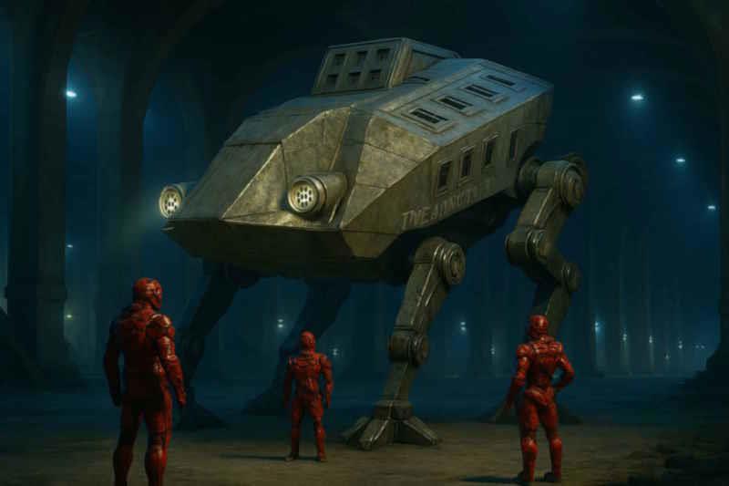 Они все вместе зашли в лифт и спустились на подземный уровень. К своему удивлению Кристал никогда тут не бывала, потому что всегда пользовалась летательным аппаратом в силу своего высокого поста. Когда двери лифта открылись, она удивилась еще больше. Потому что впереди был холл с марсианской охраной в красных костюмах, дроны и даже боевые машины. Одна из них весьма исполинского размера на 4 лапах словно ящерица стояла с вытянутой тупой бронированной мордой посматривая на них своими раскосыми цилиндрическими глазницами, утыканными многочисленными трубками-зрачками. Место вокруг было очень много. То там то тут стояли шаттлы марсианской службы охраны порядка. Все как один, завидев Шеферда, выпрямлялись, отходили в стороны, уступая дорогу. Даже здоровенная 4-лапая боевая машина, будто пугливый котенок, чуть присела и уклонилась в сторону к стене. Кристал любопытно водила глазами из стороны в сторону. Она и не думала, что тут под башней скрывается такое.