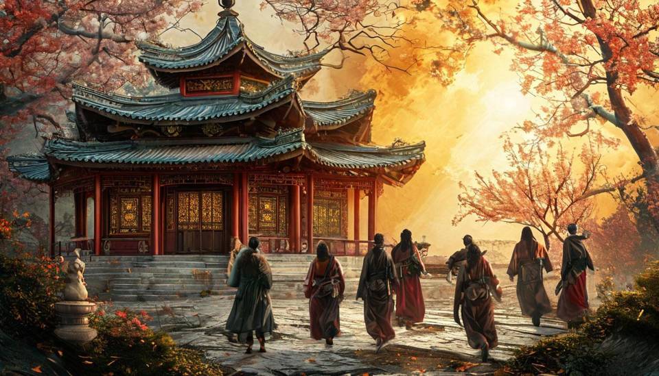 Чтобы узнаваемо, читаемо, но не прямое копирование. Завершим же «попаданческую» часть — троицей главных героев, любующихся цветением зимней сливы на фоне величественных гор. Куньлунь или других — оставим додумывать зрителю.