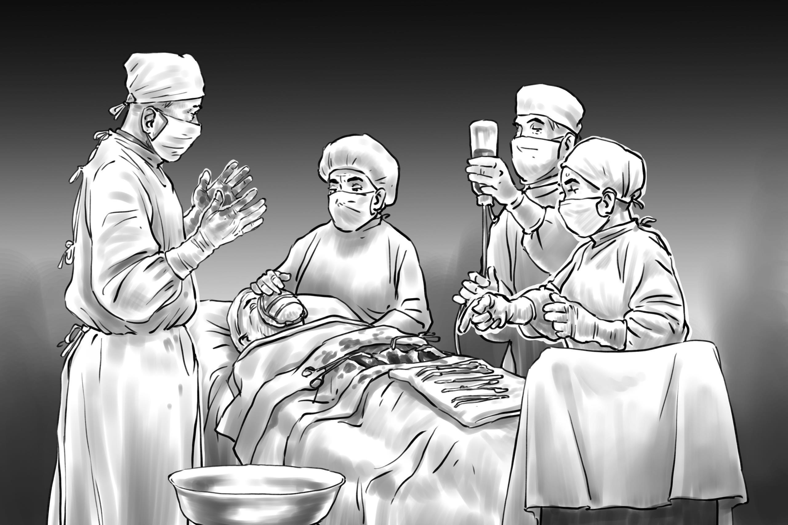 Алексей Петрович, подняв наконец руки и держа их перед собой по-хирургически, полуприкрыл глаза и выдохнул: “Считайте инструменты и тампоны”.