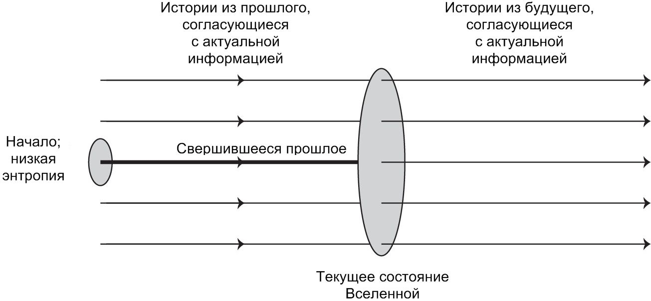 История с яйцом — модель для любых «воспоминаний», которые могут у нас быть. Речь не только о воспоминаниях как таковых, хранящихся в нашей памяти; любые записи о событиях прошлого — от фотографий до исторических книг — подчиняются тому же принципу. Все эти свидетельства, включая состояние определённых нейронных связей в нашем мозге, которые мы считаем «памятью», относятся к текущему состоянию Вселенной. Настоящий момент как таковой в равной степени ограничивает как прошлое, так и будущее. Но текущее состояние вкупе с гипотезой о том, что в прошлом энтропия была ниже, даёт нам мощный инструмент для понимания фактической истории Вселенной. Именно этот инструмент позволяет нам считать (зачастую верно), что в нашей памяти хранится достоверная информация о минувших событиях.