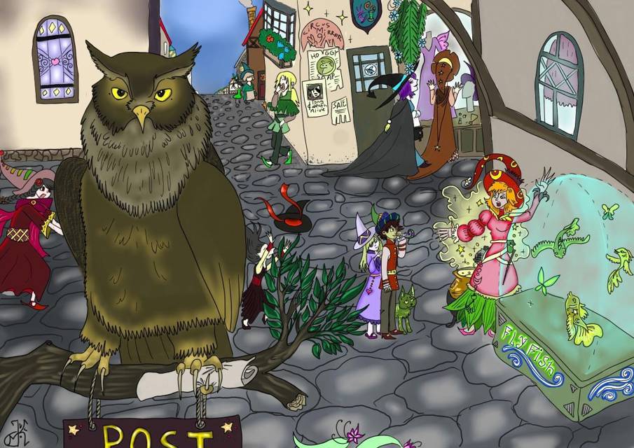 Арка разъехалась в стороны, открывая замечательный вид на Косой переулок. Думаю, выходи окна какой-то гостиницы на эту панораму, это был бы самый дорогой номер. Впрочем, мерзкая погодка изрядно заглушила яркие краски, но даже так переулок выглядел настолько восхитительно интересным, что у меня глаза разбегались. Мне приходилось так часто себя одёргивать, чтоб не зависать у витрин со всякой интересной и абсолютно непонятной белибердой. Просто ужас! Слишком уж всё было интересно!
