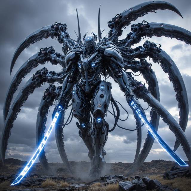 На секунду все погрузилось в гробовую тишину, а творение высоких технологий, так же похожее на гуманоида, только три метра в высоту и с десятком отростков за спиной, напоминающими крылья или паучьи лапы, развело их в сторону, даже каким-то картинным и чрезмерно медленным движением. Давая окружающим понять всю свою мощь и величие.