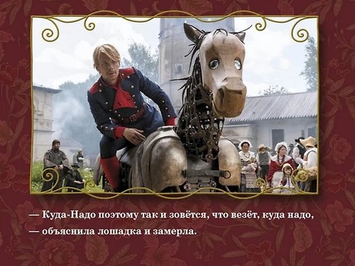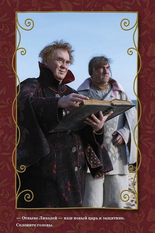Наконец на пригорок в окружении свиты выехал царь в красном кафтане и красной короне в форме терема. Вёз его рыжий конь, статный и сильный. Позади на кобыле скакала наряженная в синий бархат Настасья Ивановна. Но Ване не были интересны яркие одежды господ и их вычурные короны. Главное – он увидел юную царевну. Даша сидела на отцовском коне и болтала со старцем в светлых одеждах.