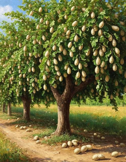 Хм, предложение интересное, даже очень. Из шёлка ведь можно спрясть нити, а это в итоге значит снять с моих селян мешки из дерюги и одеть их наконец в нормальную человеческую одежду. Плюс к тому, мы, скорее всего, сможем толкать готовую ткань другим деревням. А поскольку шёлк — товар категории «люкс», то можно поднять реально серьёзные деньги. Прям настоящий гешефт намечается. Я даже задумался, а не воссоздать ли здесь аналог Великого Шёлкового пути из истории моего мира? Вот это был бы номер, а?! Новый Шёлковый путь имени Морозова, версия два ноль. Звучит!