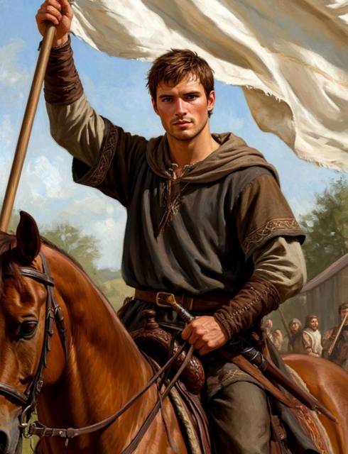 Не успели мы проехать и сотни метров до ворот, как из какой-то невидимой засады выскочили несколько всадников-лучников. Луки наизготовку, стрелы нацелены прямо на меня. Засвистел ветер, застучали копыта по камням. Я поднял флаг повыше обеими руками, показывая, что один и безоружен. Руки вверх, типа я мирный странник.