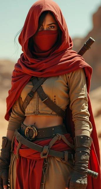 Амине чуть изменили внешность убрали ее милые ушки и хвостик, цвет кожи стал смуглый, глаза карие, ее облик отличался от моего. На торс была одета тканевая короткая куртка песчаного цвета, она оставила открытм свой животик, на ногах были одеты широкие штаны и кожаные полусапожки. Н голове, как и у меня был одет красный капюшон и лицо скрывала красная маска до глаз. С боку висел меч. Ее облик как и мой способны были привлечь к себе внимание, чего в принципе я и добивался. Почему именно такие образы, кто бы знал, так вот мне просто захотелось или снова сработала моя интуиция, которую я очень редко слушаю.