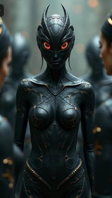 При вылупленные они были практически не отличимые, сейчас же девушки и мужчины отличались, как фигурами так и внешне. Ничего общего с теми первыми вариантами, что у нас получали. У них была специфическая внешность, но не отталкивающая. От мужчины исходила аура опасности, все его тело было покрыто хитиновым панцирем, лишь места сгибов были покрыты каким-то мягким материалом, скорее всего на остове того же хитина. Девушка же была словно голая, интимные прикрывали небольшие наросты в форме золотых бусинок, такие же своеобразные украшение, располагались по всему телу, образуя рисунок, на голове вместо волос были роговые наросты. Но больше всего меня поразили глаза огромные словно огненные, у мужчин глаза были абсолютно черные.