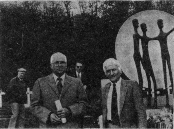 Ветераны французского Сопротивления у памятника советским военнопленным, узникам фашистских концлагерей в лотарингской коммуне Валеруа. Справа — автор памятника, бывший шахтер, скульптор Агальфар Заннони