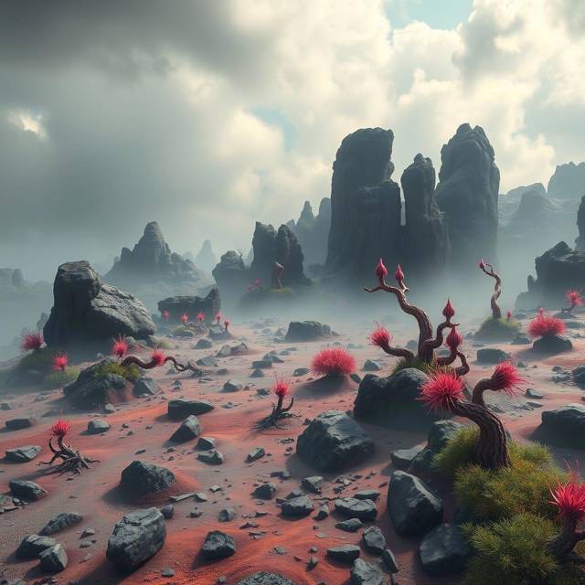 Казалось, что здесь когда-то прошли ожесточенные бои, вздыбившие землю, а местами запекшие ее до каменной твердости, через которую уже пробивалась отдельные измененные растения. Что-то даже цвело. Но явно не то, что нужно было деминской артели, потому что все проходили мимо, не обращая внимания ни на одно растение рядом. Спрашивать ничего, разумеется, я не стал: меня предупреждали, что все вопросы после похода, в зоне болтать нельзя. Любой шум здесь разносится далеко и привлекает слишком много тварей. Говорили без опаски только на коротких привалах, когда Демин врубал артефакт, глушащий звуки. К сожалению, последний при движении переставал работать.