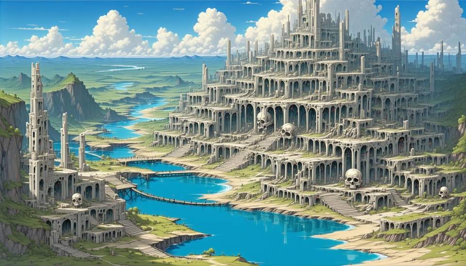 Я увидел полупрозрачный изумрудный шар в центре комнаты, потянулся к нему и… На меня нахлынули образы. Чудовищный город, посреди улиц которого высятся изогнутые белые шпили… Я не сразу понял, что шпили — это кости доисторических животных. Размер этих павших тварей потрясал воображение. Дома либо срослись с костями, либо были вырезаны внутри, между ними были переброшены мосты и целые галереи… По улицам ходили странные существа, смахивающие на эльфов — невероятно худых, даже тощих, с белыми волосами и тёмно-фиолетовой кожей.