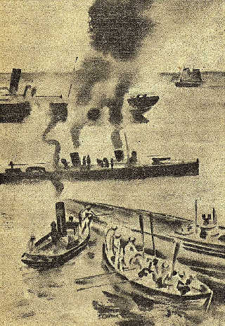 А наверху два миноносца тащили по дну проволочный канат, концы которого были привязаны к их кормам. Железная петля тянулась по дну и шарила подводную лодку. С торгового парохода сказали, что видели перископ справа, потом он исчез и снова не показался. Сказали, когда уж по всему порту разнеслась весть, что № 17 с маневров не вернулся.