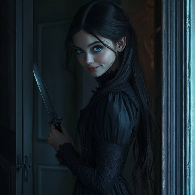 Девушка задумчиво посмотрела на него синими глазами и приоткрыла дверь чуть шире. Как обычно, на ней было сложное готическое платье, а в бледной тонкой руке она сжимала острый разделочный нож… На лезвии виднелись следы чего-то, похожего на фарш.