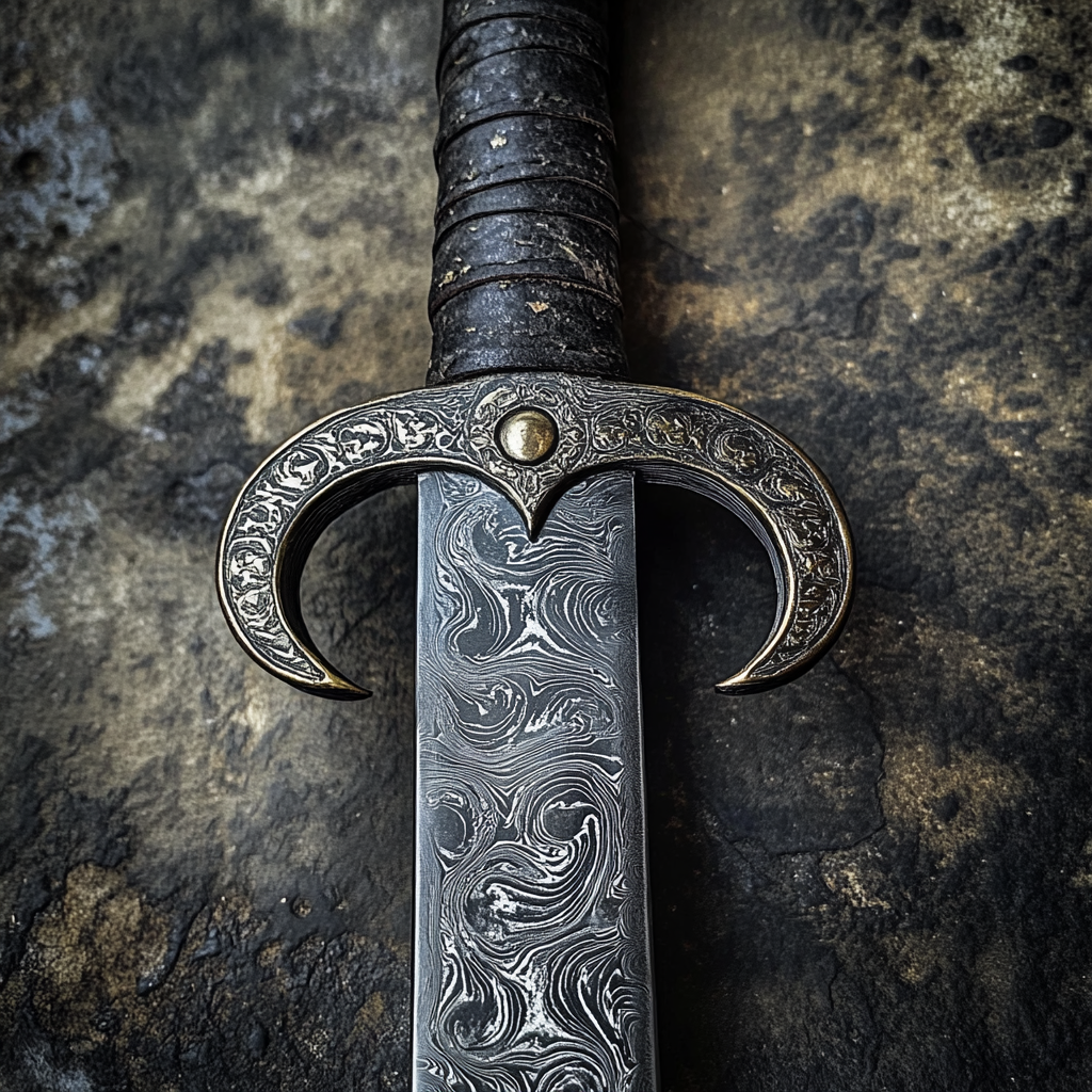 Покрутив кинжал в руках, я отметил, что он крайне искусно сделан. Лезвие было покрыто красивыми завитушками. Эфес обмотан приятной на ощупь кожей. Гарда на концах была скруглена и полумесяцы были направлены вдоль лезвия вверх.
