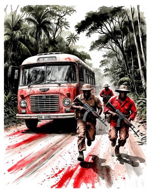 Нас раскачивало, похитители убрали автоматы за спины (спасибо и на этом), часть бразильцев следила за нами, часть расселась, а один ушёл ругаться с водителем.