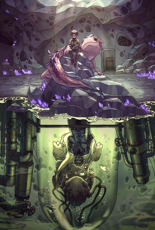 Подойдя вплотную к самому большому баку, он коснулся его холодной поверхности, что сияла от зелёных химикатов внутри бака. Большая пурпурная рептилия, к которой были присоединены десятки трубок, качавших тёмно-фиолетовую кровь, мирно спала внутри и наконец-то перестала испытывать вечную боль. Представительница одной очень любопытной мутации больше не смеялась и не играла, застряв в вечном сне.
