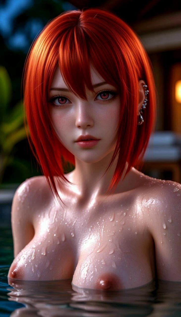 Аки стояла чуть выше чем по пояс в воде, опустив руки мне на плечи, и, склонив голову набок словно принюхивалась к чему-то. А ее взгляд был слегка затуманен, и смахивал на глаза Китсу там, в той злополучной беседке. Ее аккуратные холмики были полностью обнажены, и слегка плавали на поверхности, губы полуоткрыты а взгляд блуждал где-то далеко.