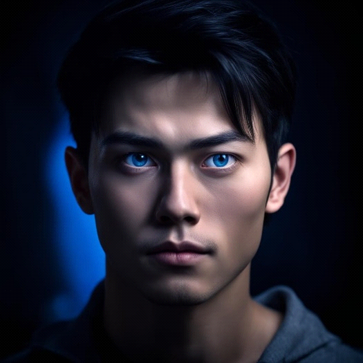 В чертах лица явно прослеживается «азиатчина», но при этом глаза совершенно не азиатского типа, а европейского. И цвет зрачков – синий! Среди азиатов и голубые-то глаза не более 1% бывают, а уж синие – нонсенс!..