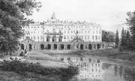Большой дворец в Стрельне, где родился К. Р. Акварель И. Мейера. 1840-е гг.