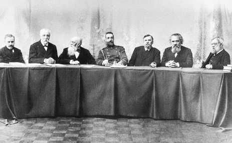 Среди присутствующих: А. А. Шахматов, И. М. Гревс, А. Ф. Бычков, А. Н. Веселовский, А. Н. Пыпин. 1900 г.