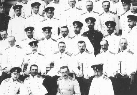 Великий князь Константин Константинович и Император Николай II (в центре второго ряда) в Преображенском полку.