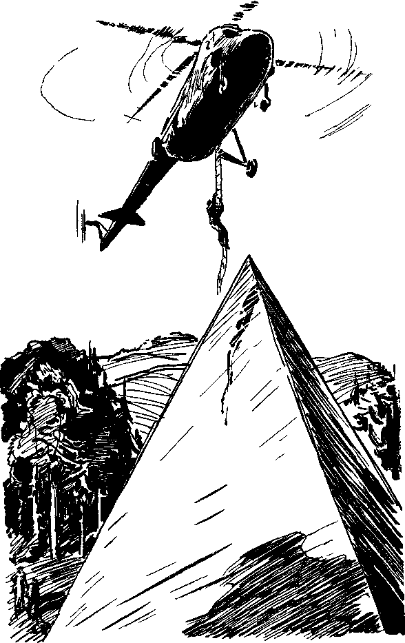 Через полчаса Григорий спустился по верёвочной лестнице с вертолёта, повисшего над пирамидой, прямо на её вершину. Закрепил на ней конец тонкого телефонного кабеля, а весь моток бросил вниз — Серёгину.