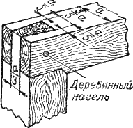 Для еще большего уплотнения рубки делают иногда лапу с коренным шипом (рис. 85), называемым иногда «потайным шипом». Шип и длина для него делаются длиною и шириною в 1/3 толщины бруса.