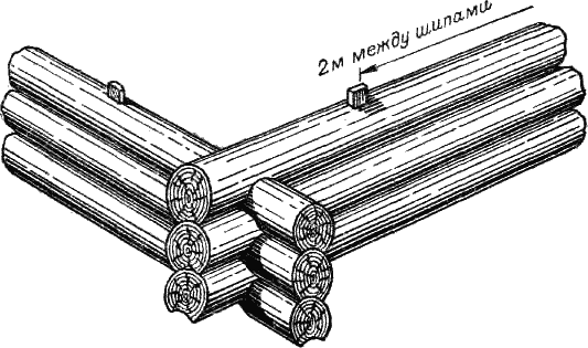 При рубке срубов мы имеем в углах тоже случай вязки. Эта вязка делается различными способами: или «с остатком», когда концы бревен выступают за поверхность стены, или без остатка, когда таких выступов не делают. Рубка «с остатком» делается в обло, вприсек и шведская.