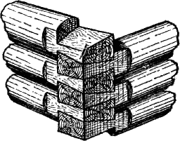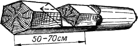 Рубка в лапу (рис. 83), или рубка «без остатка», дает благодаря клинообразному очертанию концов бревен такое соединение, когда каждый конец плотно зажат своими соседями сверху и снизу.