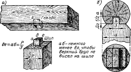 Рис. 86. Врубка шипом: а) квадратным; б) продолговатым.