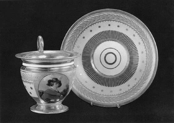 Чайная пара с портретом Николая Борисовича Юсупова в испанском костюме. Фарфор из фондов музея-усадьбы «Архангельское»