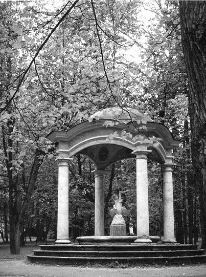 После череды зеленых боскетов открывается вид на памятную колонну с орлом. Если идти навстречу ему, то невозможно миновать Розовый фонтан, как в музее-усадьбе именуется круглой формы беседка с куполом и колоннами из красноватого мрамора. Тотчас за ней открывается новая перспектива – аллея с мраморным бюстом и памятником Пушкину, который дважды гостил здесь и, судя по его собственным стихам, любил и саму усадьбу, и ее хозяина.