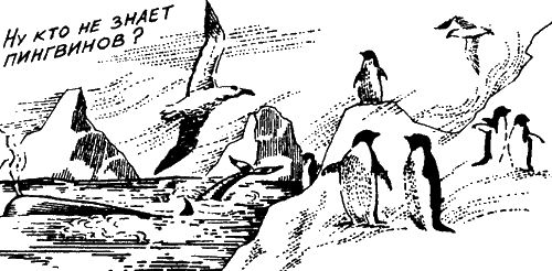 Ну кто не знает пингвинов? Это птицы, разучившиеся или никогда не умевшие летать и научившиеся плавать под водой. Их передние конечности недоразвились до крыльев. Это нечто среднее между ластами тюленей и крыльями птиц. Ходят они и даже бегают в вертикальном положении на двух ногах, смешно переваливаясь, и по раскачивающейся походке напоминают не очень ловких людей. Более быстрого передвижения они достигают скольжением – как сани зимой, особенно, если местность поката. Они ложатся на брюхо и, работая своими крыльями-ластами как веслами, быстро скользят по льду. Но особенно ловки они в воде – прыгают со льдин в воду, как хороший прыгун-ныряльщик и с огромной скоростью плывут под водой, ловко добывая себе рыбу, служащую им пищей.