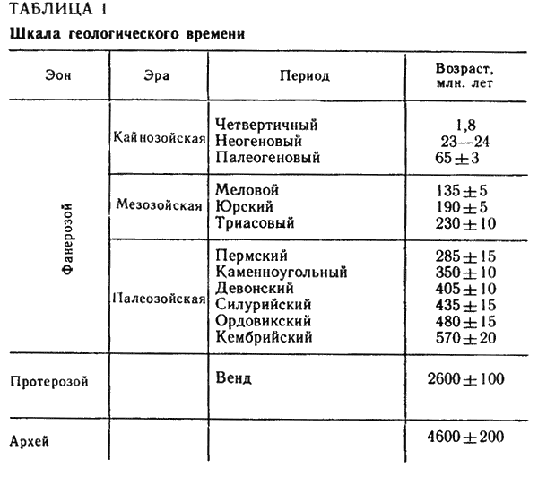 Вся история земной коры делится на зоны, эры, периоды (табл. 1) и эпохи.