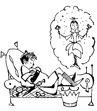 Но я обещал вам рассказать о чудесном сне принца. Начну с того, что Бутуз сам никогда не видел настоящих снов. Просто добрый сказочник подсаживался к его постели и рассказывал спящему королевичу разные занятные истории. Эти-то сказки принц и принимал за сны.