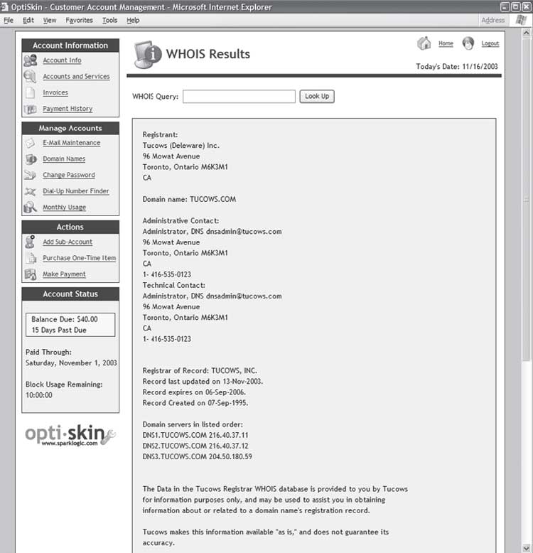 Наиболее популярным сервером, предоставляющим Whois-услуги, являетсяОн обладает данными практически обо всех зарегистрированных в Интернете компьютерах. С его помощью вы, к примеру, сможете узнать владельца той или иной машины, начало ее работы в Сети, время последнего обновления информации и т. д. (рис. 3.2).