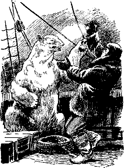 Полярный мишка не годится в матросы: не очень он ловко лазает по трапам. Пока он вскарабкался наверх, прошло секунд двадцать.