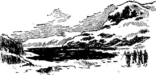 Пройдя бухту, они вскоре увидели в нескольких сотнях метров от моря небольшое нефтяное озеро. На ближайшем к нему холме время от времени начинали бить небольшие источники. Они выбрасывали нефть, стекавшую в озеро тоненькими струйками.