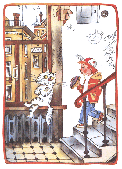 — Ну и что? — не соглашается папа. — И от кота будет польза. Мы его на собаку выучим. Будет у нас сторожевой кот. Будет дом охранять. Не лает, не кусает, а в дом не пускает.