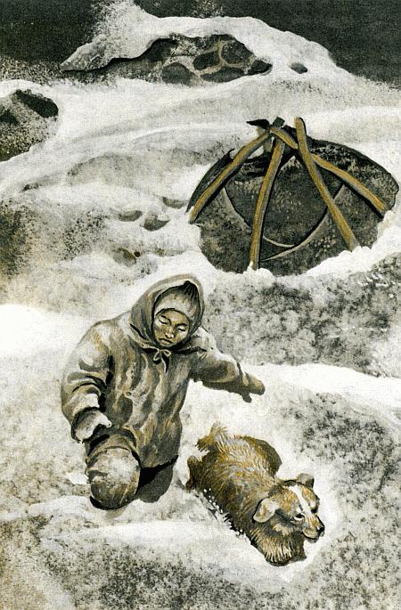 Дикая зима, бескунак небывалый! Жались псы к юрте, засыпало их с головой. Барахтались псы, как всплывая. Овцы в овчарне блеяли. В середине ночи, когда юрта была засыпана на две трети, люди проснулись — их разбудил шум в овчарне. Куцый слышал, как люди пытались выбраться через дверь. Он тянулся, держась лапами за край дымового отверстия, лаял. Его услышали, поняли, что юрта скоро будет завалена с верхом. Вспучился круг кошмы, закрывавшей дымовое отверстие, показалась голова Даулета, а там и он сам. Следом выбрался и Кашкарбай с лопатой.