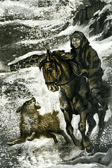 Местами ноги у лошади разъезжались на гладких, скрытых под снегом камнях. Звяканье от копыт о камни далеко разносилось вокруг. Куцый тянул голову, ожидая каждый миг появления поднятых с лёжки волков.