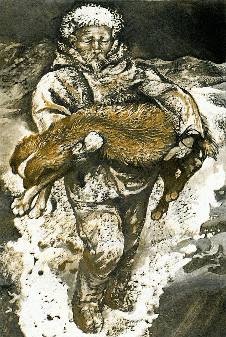 Смял Куцый зверя. В тот же миг волчьи клыки рванули грудь пса, а Куцый поймал волчье горло.