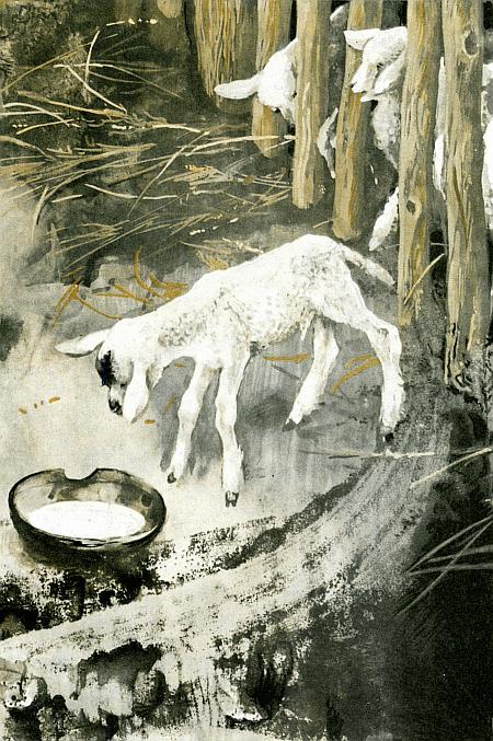 Вечером Куцего разбудила возня барашка и стук глиняной чашки. Допив молоко, не обращая внимания на ворчание Куцего, он вновь залёг у пса под боком.