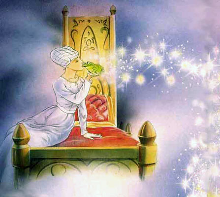 В одно мгновение лягушка превратилась в прекрасного молодого принца. Принцесса очень удивилась и обрадовалась.