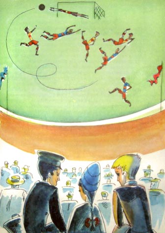 «Неужели Сережа-машинист с папиного «Степана Разина»? Папа ждет в порту. А он, что же, футбол смотрит? Нет, быть того не может».