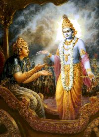 И сказал тогда Юдхиштхира Арджуне: "Разве одолеть нам это несметное войско, ведомое нашим дедом, непобедимым Бхишмой? Войско Кауравов столь велико, а вожди его столь искусны, что сомневаюсь я в нашей победе". Арджуна ответил: "О царь, нас немного, но на нашей стороне правда, мужество и справедливость. С нами Кришна, а где Кришна, там и победа".