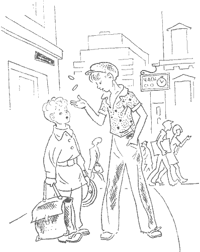 Зиночка вытащил из кармана два пятака. Мальчишка схватил их, подбросил с прибауточкой: