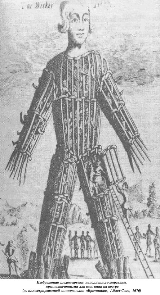 Во время Троянской войны, например, ее легендарный герой Ахилл бросил в погребальный костер своего соратника Патрокла двенадцать захваченных в плен троянцев. Позже, во время крупного морского сражения при Саламине в 480 году до н.э. между греками и персами, греческий командующий Фемистокл приказал принести в жертву трех захваченных накануне персов, чтобы обеспечить себе победу. Римляне тоже прибегали к человеческим жертвам. Около 226 года до н.э. они закопали заживо двух греков и двух галлов, чтобы не дать исполниться пророчеству о том, что в скором времени галлы с греками овладеют Римом. Подобные инциденты случались и позже, в 216 и 104 гг. до н.э. Даже вымуштрованные римские войска робели при первых столкновениях с кельтами, которые шли в бой, распевая магические гимны, и, сорвав с себя все одежды, совершенно голые устремлялись на римлян. Существование кельтского культа «отсеченной головы» еще в доримской Европе «железного века» наводит на мысль, что чернокожие и индейцы в современной Америке — не единственные наследники «охотников за черепами». Воины-кельты, бросив отрубленные головы своих врагов в боевые колесницы, везли их домой, где насаживали на высокие шесты. На юге Франции кельты демонстрировали черепа в специальных нишах, вырубленных в скальном монолите. Вражеские черепа украшали кельтские горные форты и главные ворота перед их городами и поселениями. Нам известно, что человеческие жертвоприношения играли важную роль в кельтском религиозном ритуале и эта процедура осуществлялась под присмотром особой касты жрецов, получившей название друидов. Кельты предпочитали сжигать людей на кострах, для чего изготовляли плетеные корзины из ивняка в рост человека, заталкивали в нее жертву и поджигали прутья. Иногда жертв потрошили, чтобы друиды по исходящим паром внутренностям могли предсказать будущее, или их закалывали кинжалом в спину и, после того как человек в страшной агонии умрет, по положению его скорченных членов жрецы проводили ту же процедуру. Геродот сообщает еще об одном знаменитом народе — «охотниках за черепами»: о скифах, живших в низовьях Дуная и на берегах Черного моря. Они регулярно приносили в жертву каждого сотого из захваченных на поле брани вражеских воинов.