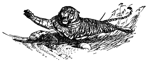 Когда тигр убивает свою добычу, предварительно подкравшись к ней или из засады, успех нападения зависит прежде всего от быстроты, а также от состояния его зубов и когтей. Если тигр страдает от одной или нескольких мучительных ран, если у него повреждены зубы или стерты когти, вследствие чего он уже не может охотиться на животных, которыми всегда питался, ему приходится убивать людей. Я думаю, что превращение тигра в людоеда обычно происходит случайно.