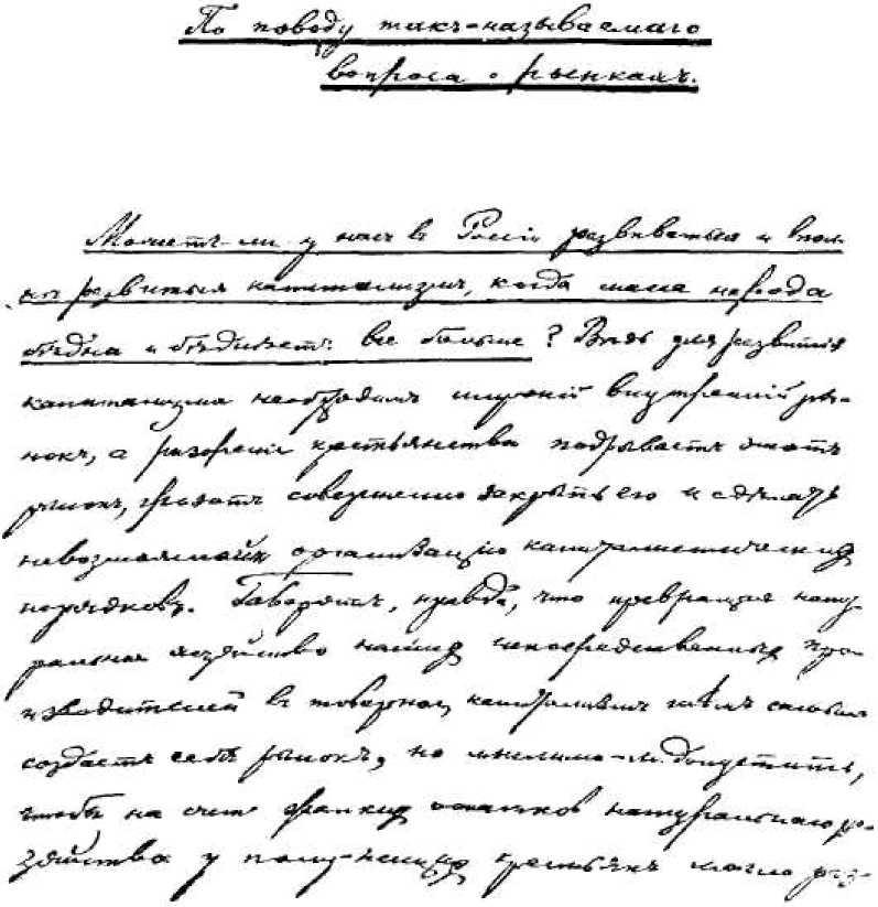 Первая страница рукописи В. И. Ленина «По поводу так называемого вопроса о рынках». — 1893 г.
